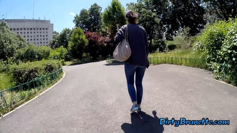 I dare her to play with her pussy trough jeans in a park (07 July 2018)